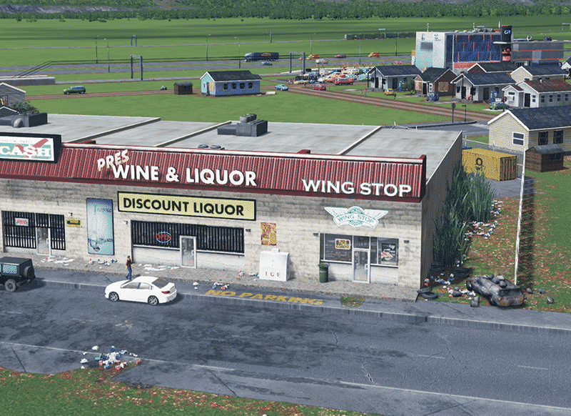 Fast food specializing in Hot Wings. Level 1 Low Density commercial. 10 workplaces with RICO mod.