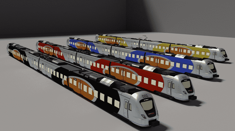 The vehicle will now use the line color on the red circle thing. Use a red line color to get the original livery. See the last three images for examples of other line colors.