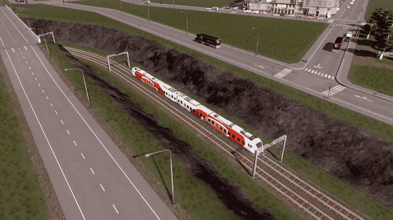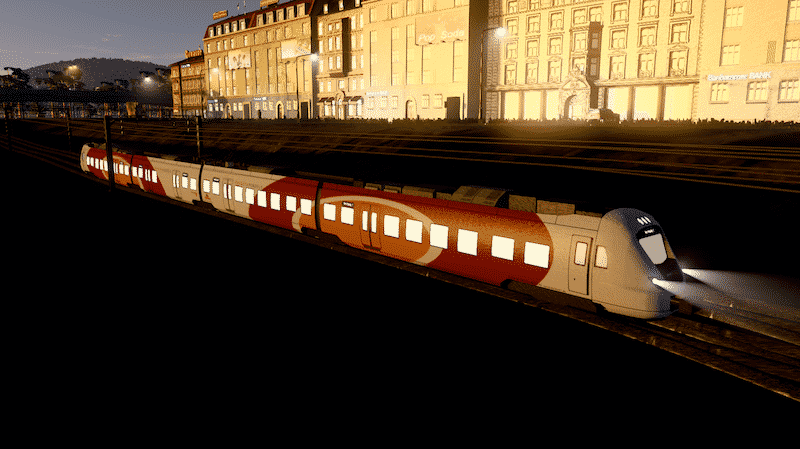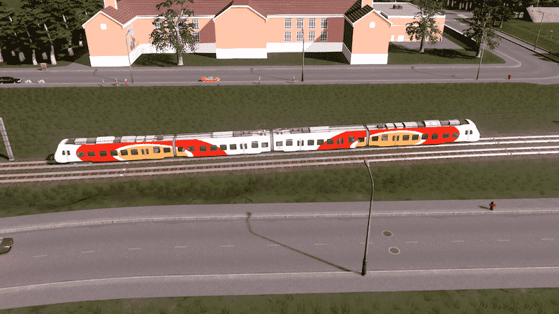 I suggest that you use the IPT – Improved Public Transport mod or the Advanced Vehicle Options (AVO) mod to replace the last car with an engine. The rear end will otherwise lack headlights.