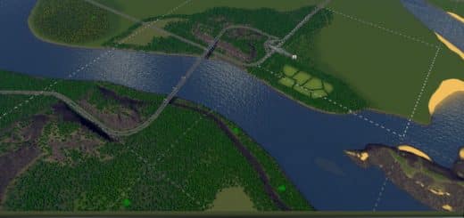 This realistic map borrows its features from modified, real-world heightmaps. The river does not accommodate large boat traffic, but plentiful rail and highway connections will service any industry need. All highways and rails have been carefully placed in their real-world locations (although some on- and off-ramps have been adjusted to make them valid in Cities: Skylines).